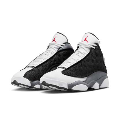 The Air Jordan 13 Retro 'Black Flint' is a sleek and stylish sneaker with a minimalist color palette. The Jordan branding on the upper is detailed and adds to the shoe's charm. The toe is designed to protect against scuffs and collisions, making it perfect for any activity. Inspired by the iconic Black Cat, this sneaker is part of a series of shoes that are sure to turn heads. The combination of black, university red, flint grey and white make this shoe a timeless classic. Whether you're on the court or out and about, the Air Jordan 13 Retro 'Black Flint' is the perfect choice.