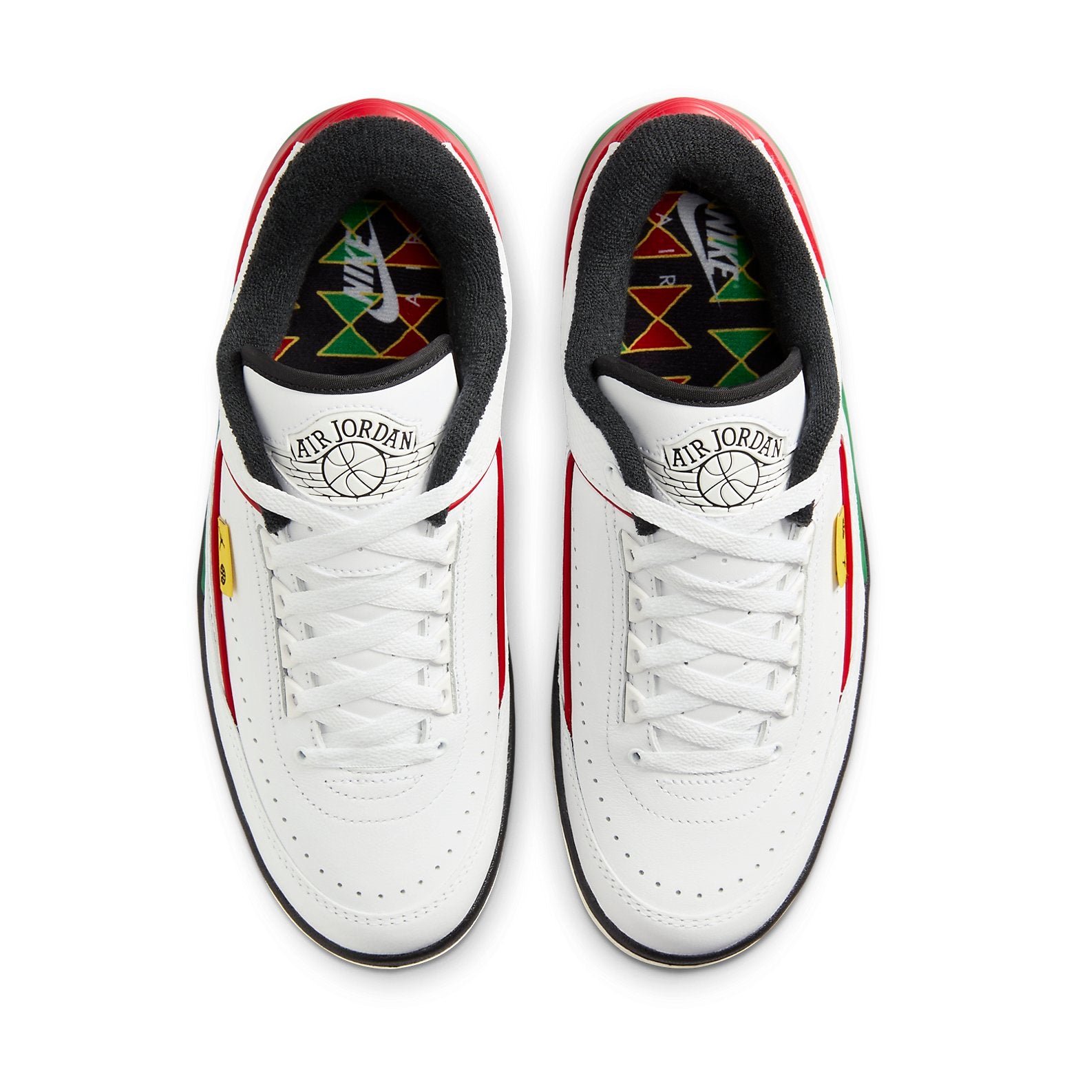 The Air Jordan 2 Low 'QUAI 54 2023' is a stylish and modern sneaker that is perfect for everyday wear. Its sleek silhouette and white colorway with accents of green and red make it a fashionable choice for any occasion. The sneaker is designed to provide maximum comfort and durability with its wear-resistant sole material. Inspired by the Quai 54 basketball tournament, this sneaker is a must-have for any Air Jordan fan. Whether you're running errands or going out for the night, the Air Jordan 2 Low 'QUAI 54 2023' is the perfect choice.
