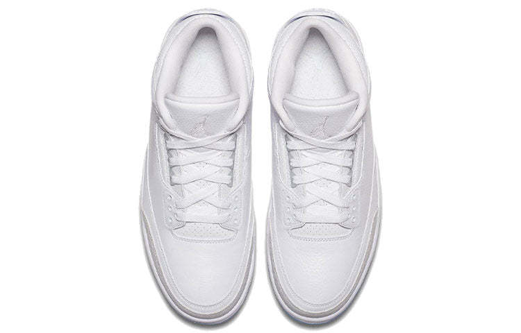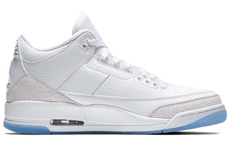 The Air Jordan 3 Retro Triple-White is a sleek and stylish take on a classic sneaker. This shoe features an all-white leather upper with tonal elephant print details, giving it a simple and sophisticated look. With its translucent blue outsole, this shoe is perfect for any occasion.