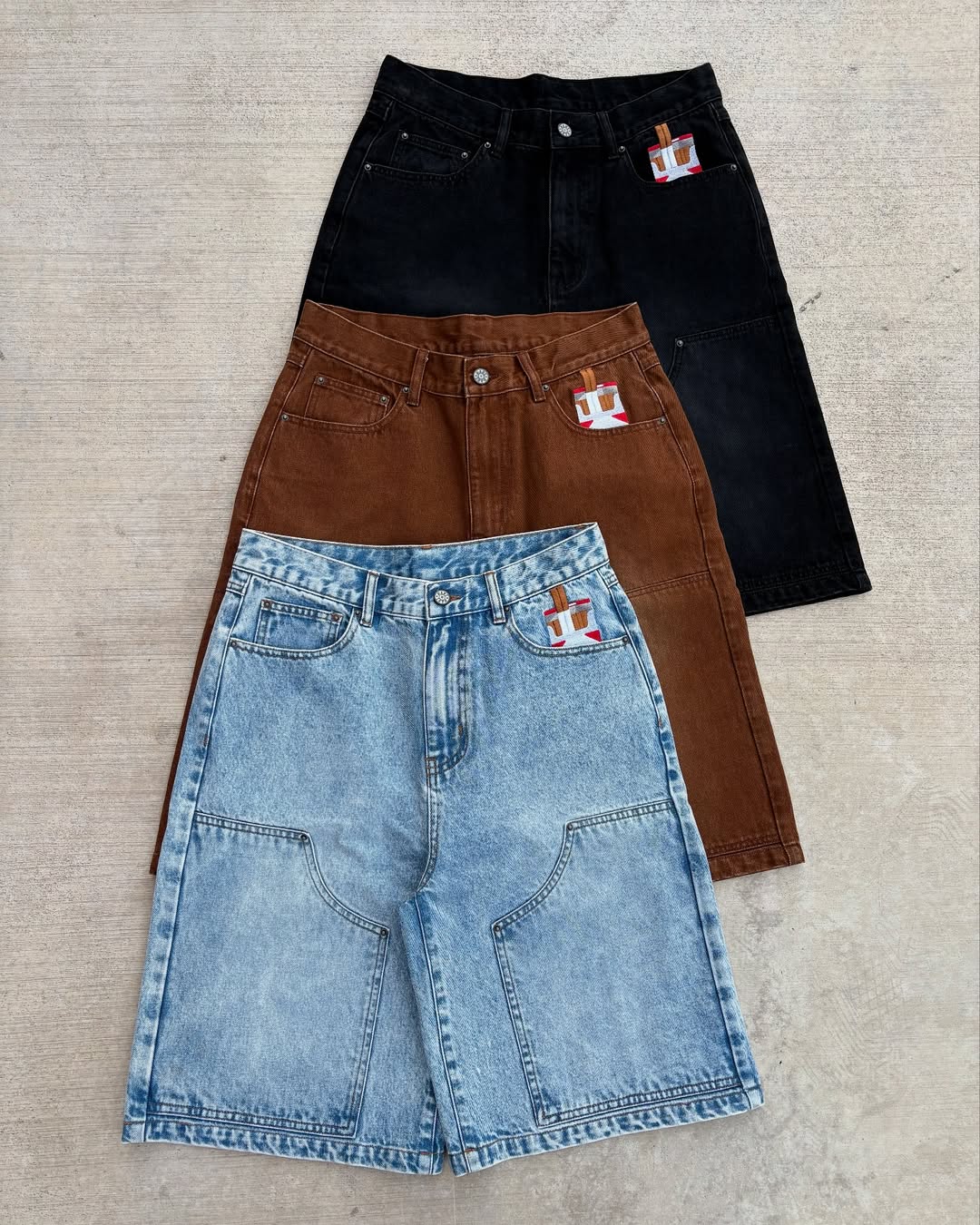 Relaxed fit sorts. Features a custom embossed button and hardware, back pockets, and cargo pockets on the side of each pant leg- Y2K Zipper- Custom Hardware- Back Pockets- Cargo Pockets- Relaxed / Oversized fit- Unisex