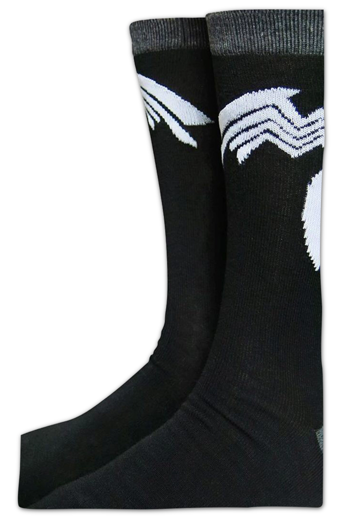 These Venom socks feature the iconic logo for the symbiotic organism from another planet who feeds on adrenaline and grants spider-like powers to its owner.