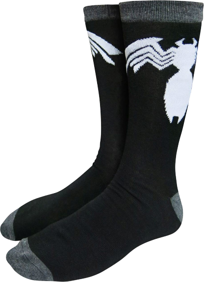 Venom first bonded with Spider-Man during his adventure in the first "Secret Wars" on the Beyonder's makeshift planet called Battleworld. Initially, Spider-Man thought the symbiote was just a costume. However upon his discovery that it was sentient, he rejected it. Since then, the symbiote has bonded with several different hosts, and Venom has become one of the most popular characters in the pages of Marvel Comics. Everyone will immediately know you are a fan when you wear these Venom Logo Marvel Comics Socks!